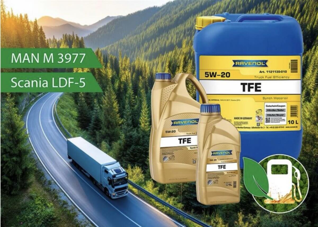 With the new RAVENOL TFE Truck Fuel Efficiency SAE 5W-20, RAVENOL is expanding its portfolio with a state-of-the-art high-performance diesel engine oil that has been specially developed for the latest truck engines from MAN and Scania.